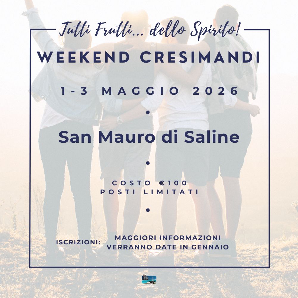 Un weekend di pura emozione per coronare la tua preparazione spirituale! Divertimento, riflessione e condivisione con altri adolescenti per scoprire i doni dello Spirito Santo e prepararti al grande giorno! Giochi, laboratori, preghiera e tanto altro ti aspettano!